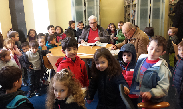 Depois de visitarem toda a Biblioteca e de ficarem a saber um pouco como ela está organizada e que serviços presta, foi a vez de ouvirem, muito atentamente, a leitura deste livro